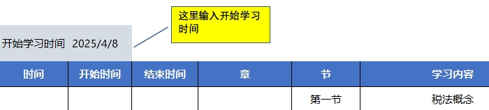 選中學(xué)習(xí)計劃表后,回到表格最上方,在灰框位置輸入起始學(xué)習(xí)時間,生成學(xué)習(xí)計劃。