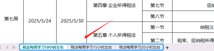 學(xué)習(xí)計劃表根據(jù)每周學(xué)習(xí)該科目的時長劃分為三種情況,分別為“稅法每周學(xué)習(xí)10小時左右”、“稅法每周學(xué)習(xí)15小時左右”和“稅法每周學(xué)習(xí)20小時左右”,考生請根據(jù)自身實際情況,選擇對應(yīng)表格。