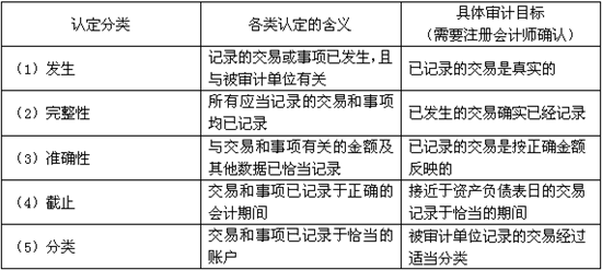 (二)與所審計期間各類交易和事項相關(guān)的認(rèn)定與具體審計目標(biāo)
