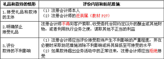 本部分內(nèi)容請(qǐng)大家從接受禮品和款待的主體(比如是注冊(cè)會(huì)計(jì)師本人還是其近親屬或與其存在密切關(guān)系的人員),注冊(cè)會(huì)計(jì)師行業(yè)禁止接受禮品的情形,以及如果在實(shí)際執(zhí)業(yè)過程中遇到客戶的款待時(shí)如何判斷對(duì)職業(yè)道德基本原則或?qū)Κ?dú)立性的影響。