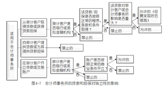依據(jù)圖4-7,針對(duì)會(huì)計(jì)師事務(wù)所的貸款和擔(dān)保業(yè)務(wù),分析如下: