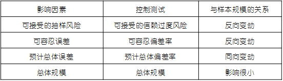注冊(cè)會(huì)計(jì)師在控制測(cè)試中確定的樣本規(guī)模受到以下因素的影響,如下表: