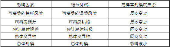 注冊會計師在細節(jié)測試中確定的樣本規(guī)模受到以下因素的影響,如下表: