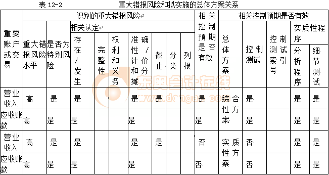 2.評估重大錯報(bào)風(fēng)險(xiǎn)與擬實(shí)施的總體方案的對應(yīng)關(guān)系(見下表)