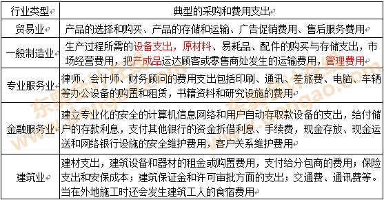 【知識點】:不同行業(yè)類型的采購和費用支出