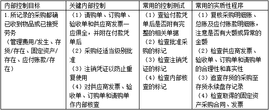 2014《審計(jì)》高頻考點(diǎn):采購交易的內(nèi)部控制目標(biāo)、關(guān)鍵內(nèi)部控制和審計(jì)測試一覽表