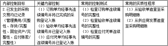 【高頻考點(diǎn)】:采購交易的內(nèi)部控制目標(biāo)、關(guān)鍵內(nèi)部控制和審計(jì)測試一覽表