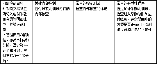 (一)采購交易的內(nèi)部控制目標(biāo)、關(guān)鍵內(nèi)部控制和審計(jì)測試一覽表