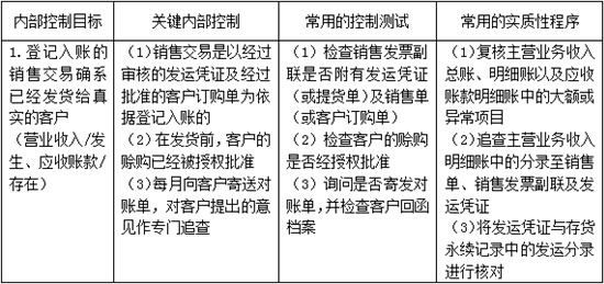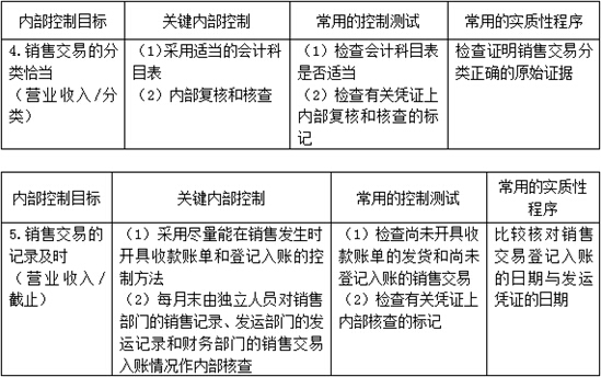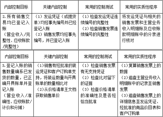 【知識(shí)點(diǎn)】:銷售交易的內(nèi)部控制目標(biāo)、關(guān)鍵內(nèi)部控制和審計(jì)測(cè)試一覽表