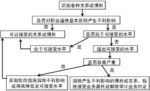 首先,識別對職業(yè)道德基本原則產(chǎn)生不利影響的各種關(guān)系或情形;