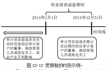 審計(jì)項(xiàng)目組成員最近曾擔(dān)任審計(jì)客戶的董事、高級(jí)管理人員或特定員工,一般是針對(duì)審計(jì)項(xiàng)目組成員加入會(huì)計(jì)師事務(wù)所之前的期間。如圖22-13所示: