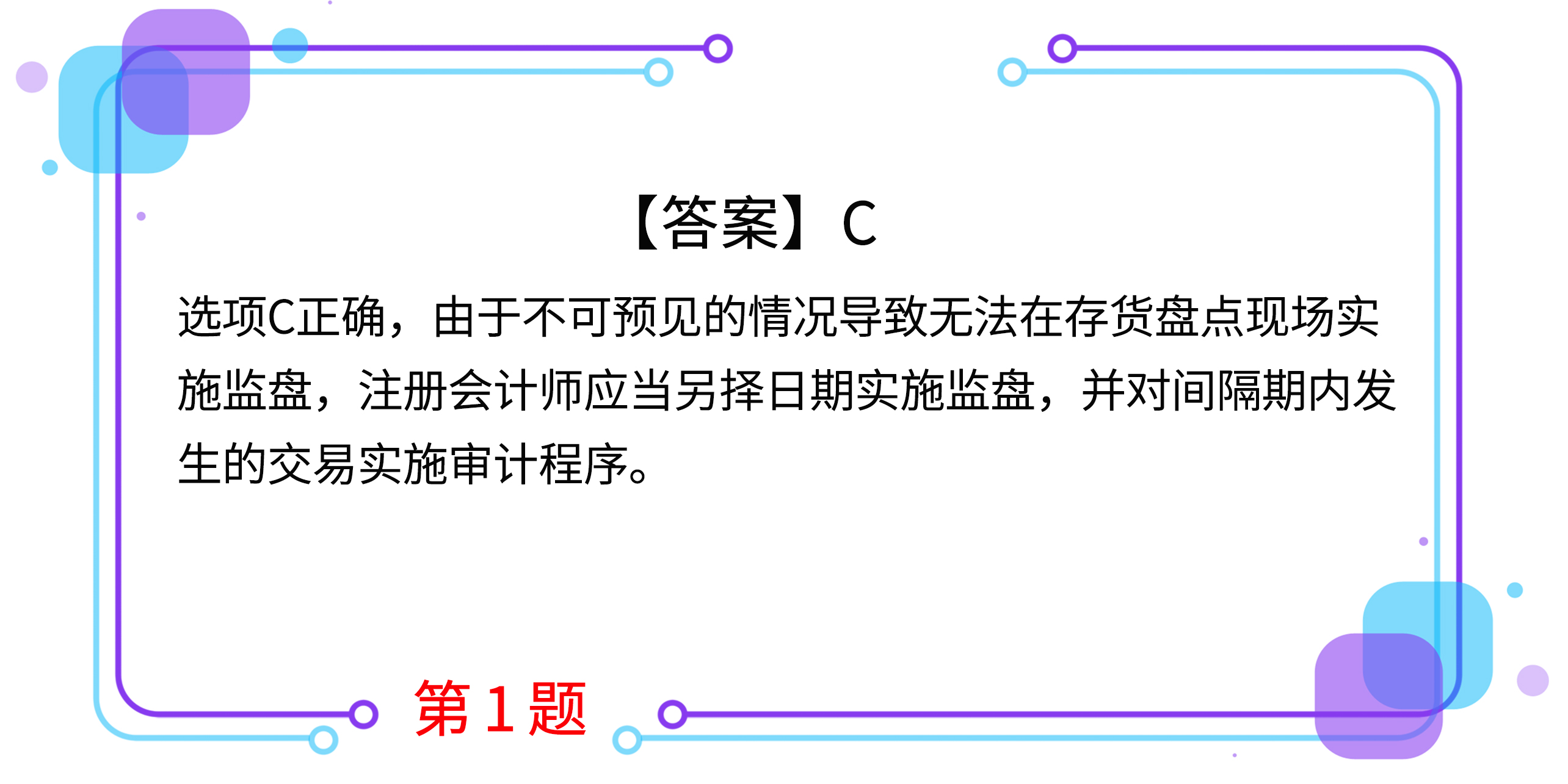 1.由于天氣原因?qū)е伦詴?huì)計(jì)師無法在存貨盤點(diǎn)現(xiàn)場實(shí)施監(jiān)盤,以下應(yīng)對措施中,正確的是( )。