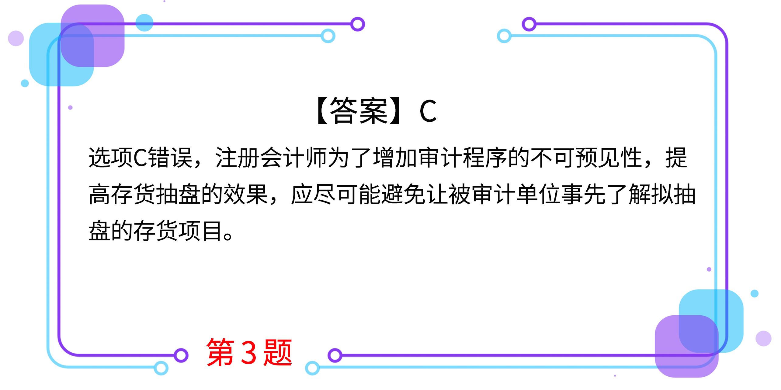 3.下列有關(guān)對存貨實(shí)施抽盤程序的說法中,錯(cuò)誤的是( )。
