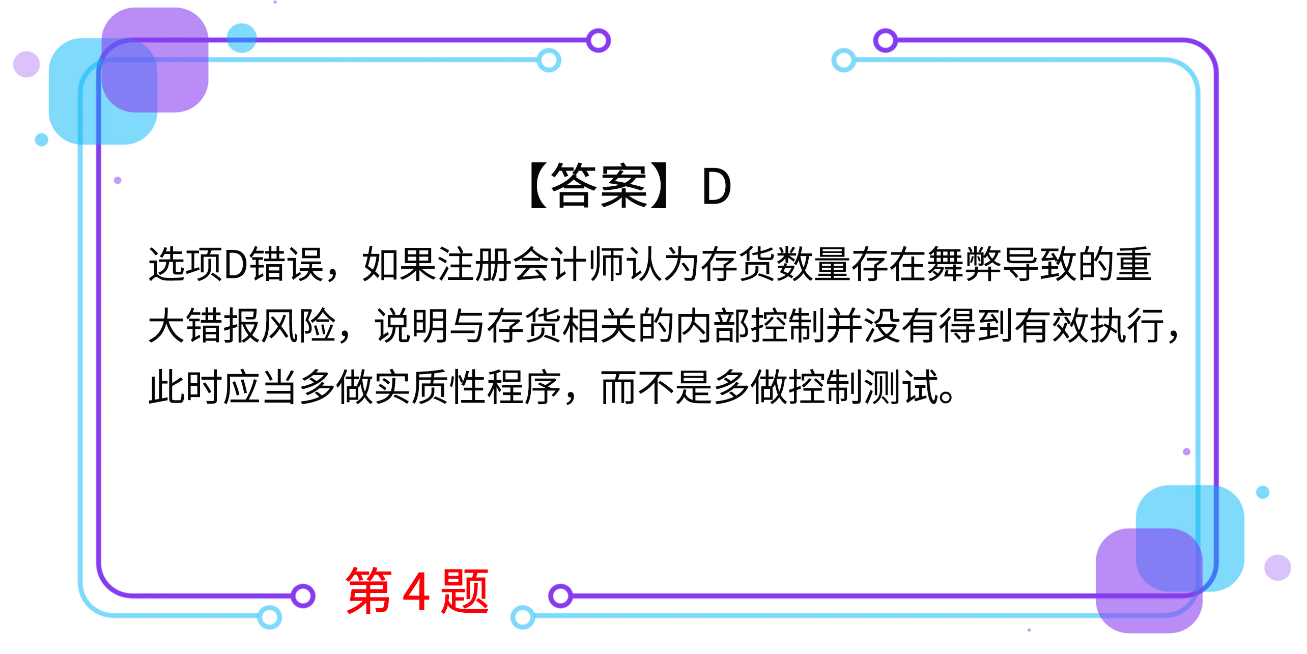 D.抽盤時(shí)如果發(fā)現(xiàn)抽盤差異,注冊會(huì)計(jì)師應(yīng)當(dāng)考慮錯(cuò)誤的潛在范圍和重大程度,在可能的情況下,擴(kuò)大檢查范圍以減少錯(cuò)誤的發(fā)生