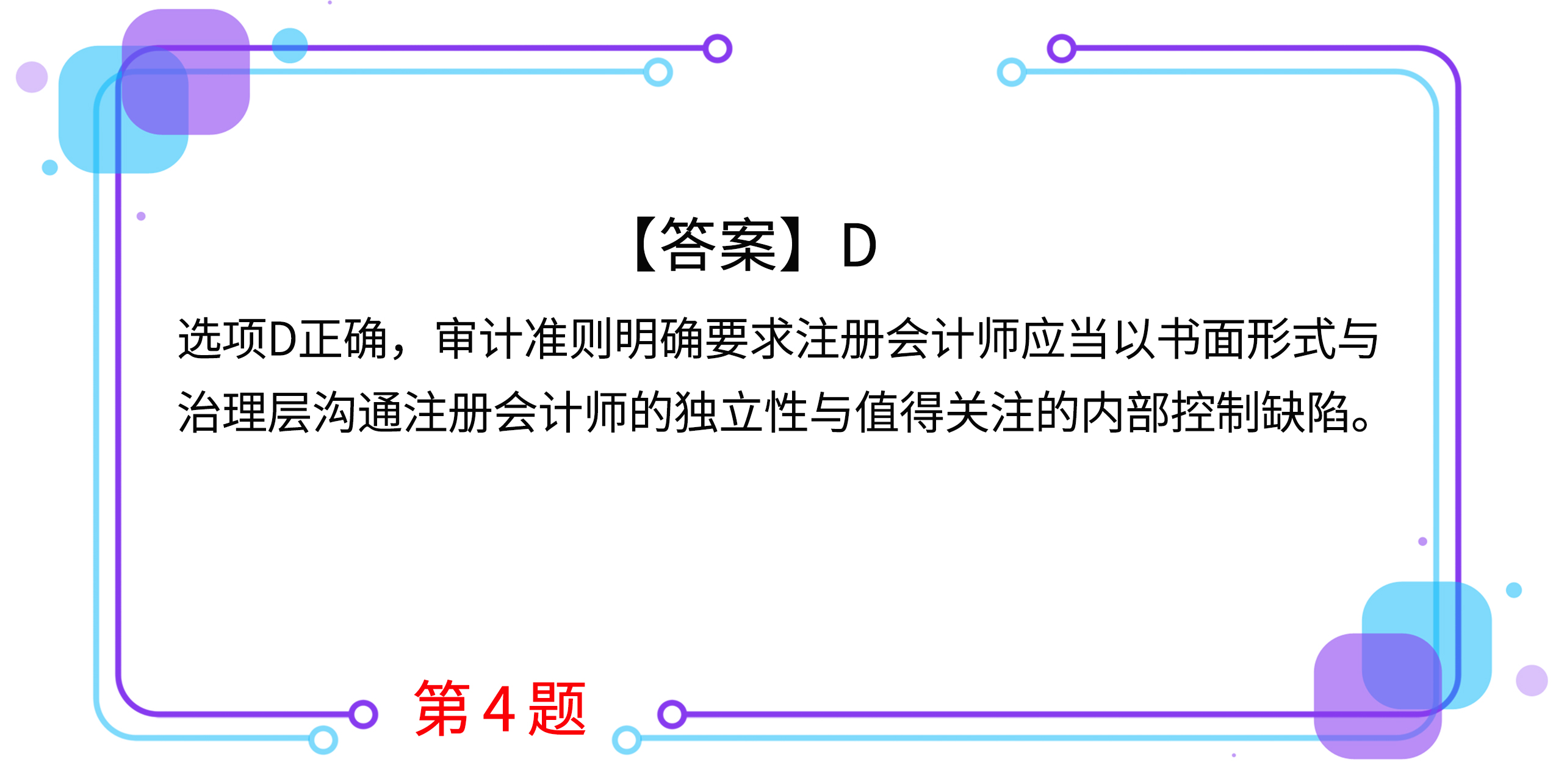 4.下列各項中,注冊會計師應當以書面形式與治理層溝通的是( )。(2017年)