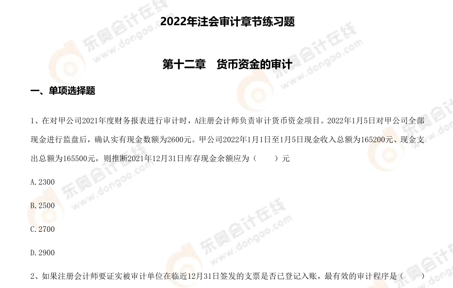 注:章節(jié)練習題出自東奧名師劉圣妮老師的2022年《審計》基礎精講班課程講義