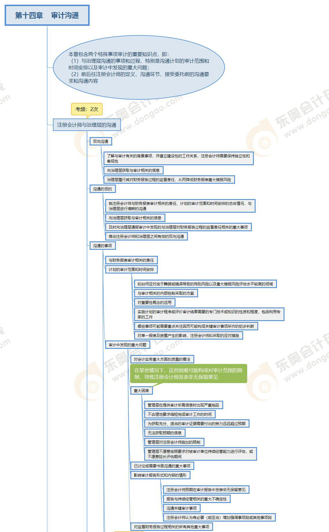 注冊會計師專業(yè)階段考試有六門科目,考試內(nèi)容體系復雜,知識點的數(shù)量細且多。思維導圖可以使教材變薄,對關鍵信息進行細化和總結,建立知識點之間的聯(lián)系,完成信息整合,便于考生分析和理解。東奧小編整理了2022年注冊會計師《審計》第十四章思維導圖+章節(jié)練習題,快來領取吧!