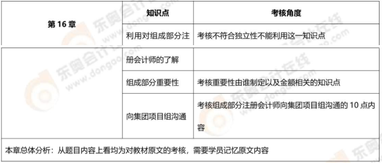 本章屬于非常重要的章節(jié),各種題型均會(huì)涉及,知識(shí)點(diǎn)密度較大,客觀題幾乎每年都有考查,可以命制一道完整的簡(jiǎn)答題,綜合題中偶爾也會(huì)體現(xiàn),需要重點(diǎn)掌握:重要組成部分與非重要組成部分的區(qū)分,重要性水平的確定,針對(duì)評(píng)估的風(fēng)險(xiǎn)采取相應(yīng)的應(yīng)對(duì)措施,與集團(tuán)治理層溝通