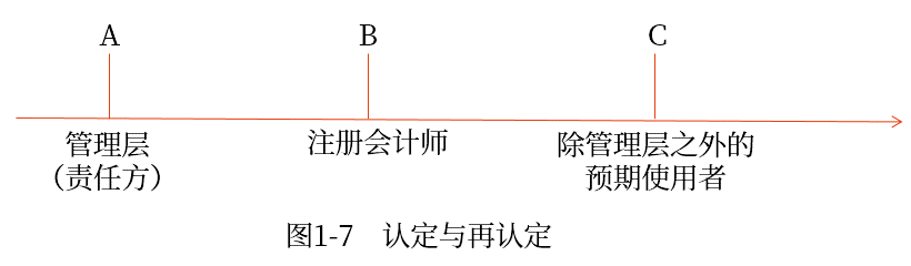 如圖1-7所示,管理層認定“A”與注冊會計師再認定“B”的關系好比“左手與右手”。