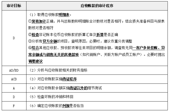 二、審計目標(biāo)與審計程序?qū)?yīng)關(guān)系