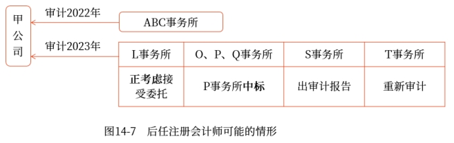 (2)前后任注冊會計師并不一定意味著后任將取代前任,當被審計單位的財務(wù)報表已經(jīng)審計但需要重新審計時,就不屬于后任取代前任的情況。