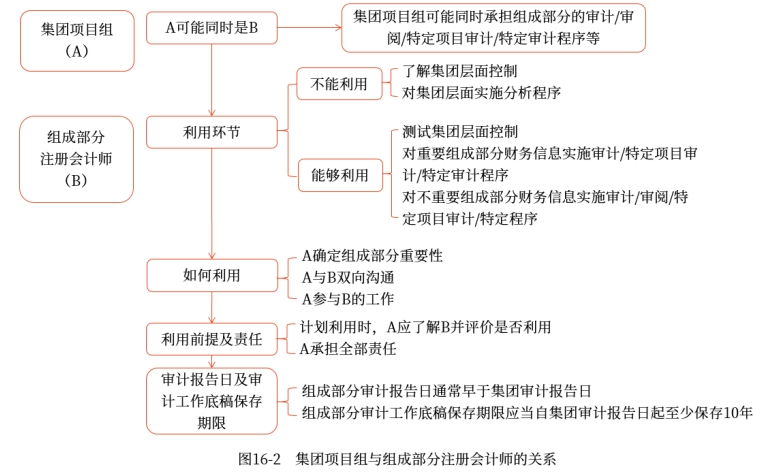 集團(tuán)項(xiàng)目組與組成部分注冊(cè)會(huì)計(jì)師的關(guān)系,如圖16-2所示。