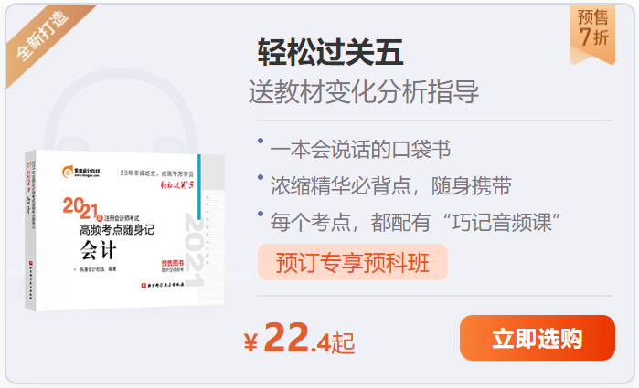 更多注冊會計師輔導教材——《輕松過關?》系列輔導書的優(yōu)惠活動,請戳我了解>>>