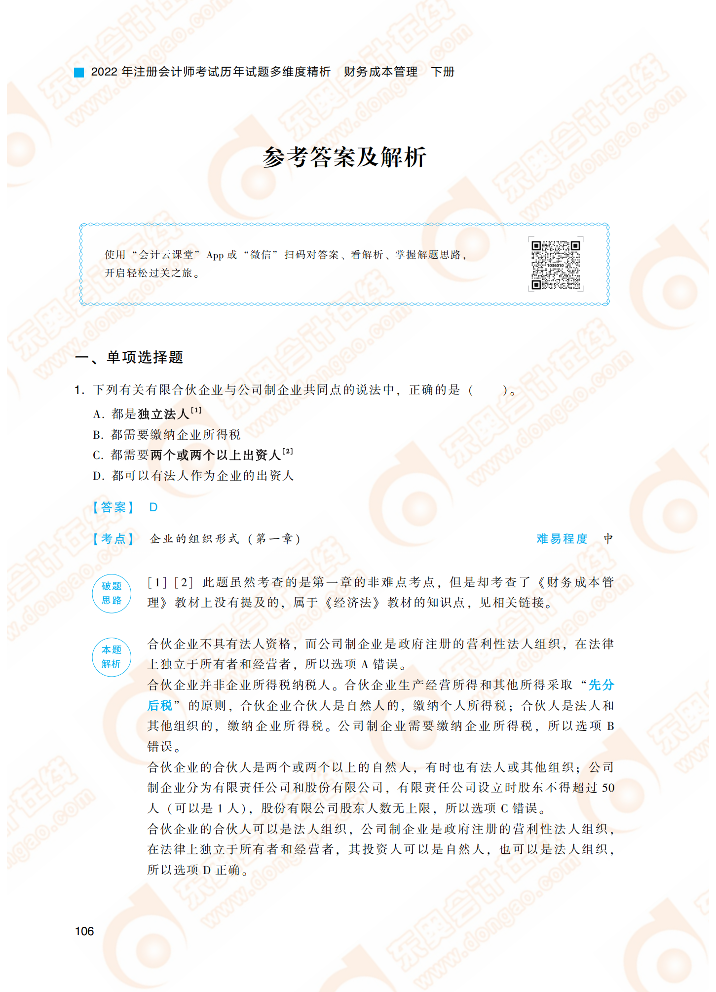 下冊為獨立“答案冊”,名師從四大維度,逐題精析,帶您反向回顧考點,強化記憶,真正做會、做懂、做透。