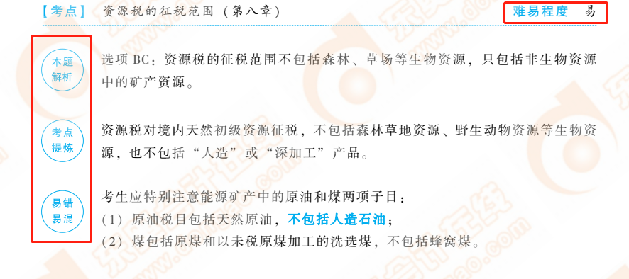 題目解析中清楚標(biāo)注難易程度,每個(gè)考點(diǎn)明確對應(yīng)知識點(diǎn)內(nèi)容,解析題目,提煉考點(diǎn)、易錯(cuò)易混標(biāo)注,看懂一道題比會做一道題價(jià)值更高,多了解一道題,考試就多一分把握。