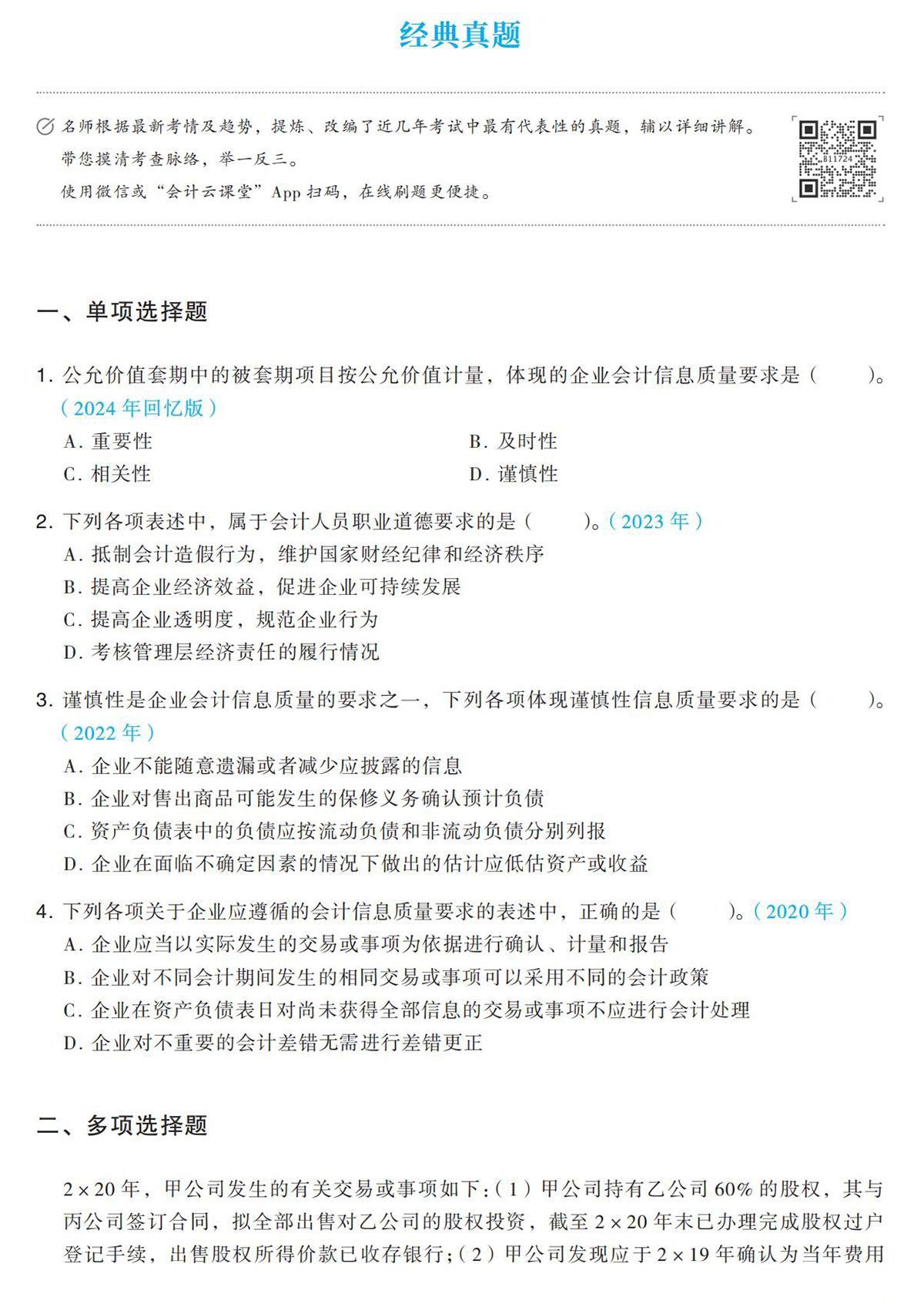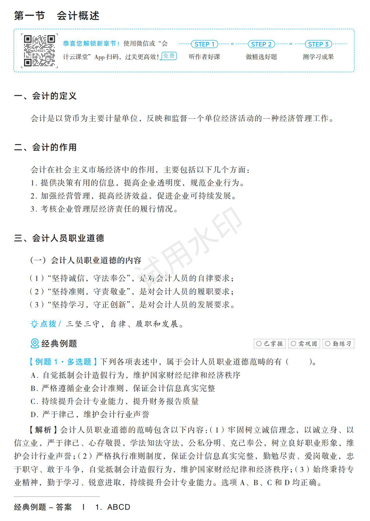 最后是經(jīng)典真題及新編好題部分,《輕一》將歷年考試中涉及該章節(jié)考點(diǎn)的習(xí)題也編入書中,全章知識(shí)學(xué)完后,可搭配掃碼視頻講解,了解往年的真題是如何考查的,掌握出題思路和方向。同時(shí)還配有精編好題,順應(yīng)未來考試趨勢(shì)新編習(xí)題,幫助考生檢測(cè)知識(shí)掌握情況。習(xí)題、答案解析分開的模式,可最大程度測(cè)出你真實(shí)的水平。