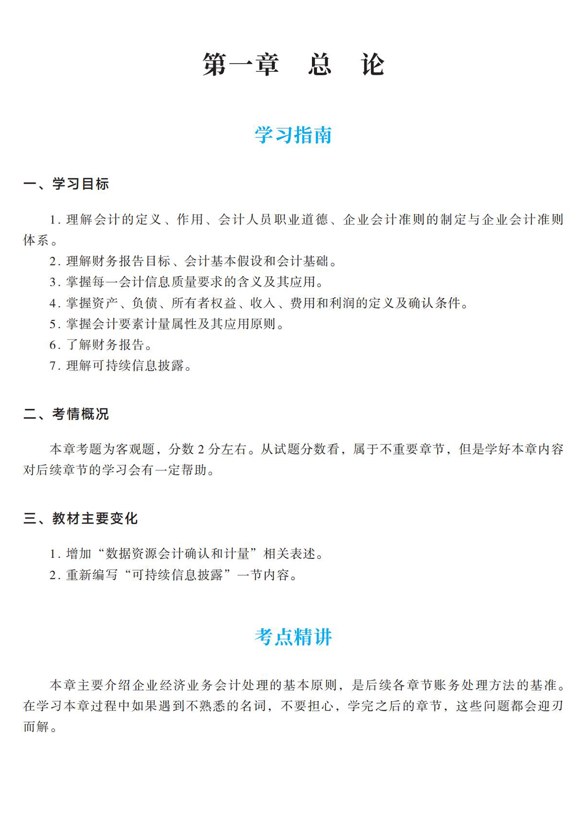 首先是學(xué)習(xí)指南部分,老師將從學(xué)習(xí)目標(biāo)、考情概況、教材變化等幾個(gè)角度,讓考生對(duì)整章內(nèi)容有宏觀的把握。