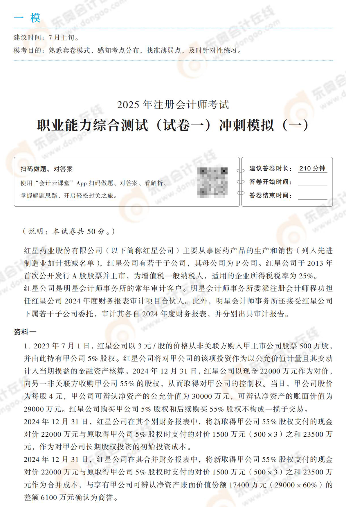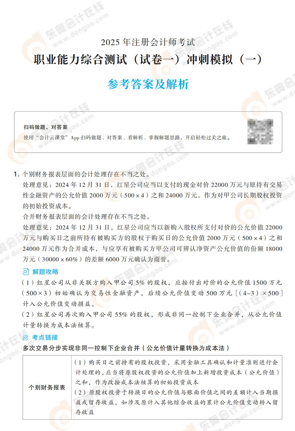 2025年注會(huì)綜合《輕一》為《綜合階段精講及同步案例》,其中包含三大核心亮點(diǎn):考點(diǎn)新,內(nèi)容精,理解更透徹!以下為《輕一》圖書試讀,輔導(dǎo)資料如何選擇?眼見為實(shí)才有效果!