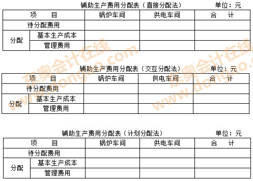 (1)分別采用直接分配法、交互分配法和計劃分配法對輔助生產(chǎn)費用進行分配(結(jié)果填入下方表格中,不用列出計算過程)。(2014年教材刪除了計劃分配法的內(nèi)容)