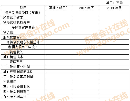(1)編制修正后基期及2013年度、2014年度的預(yù)計資產(chǎn)負債表和預(yù)計利潤表(結(jié)果填人下方表格中,不用列出計算過程),并計算甲公司2013年度及2014年度的實體現(xiàn)金流量。