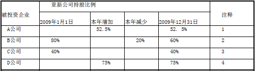 亞新公司2009年度部分長(zhǎng)期股權(quán)投資持股比例變動(dòng)情況及相關(guān)關(guān)聯(lián)交易情況摘錄如下: