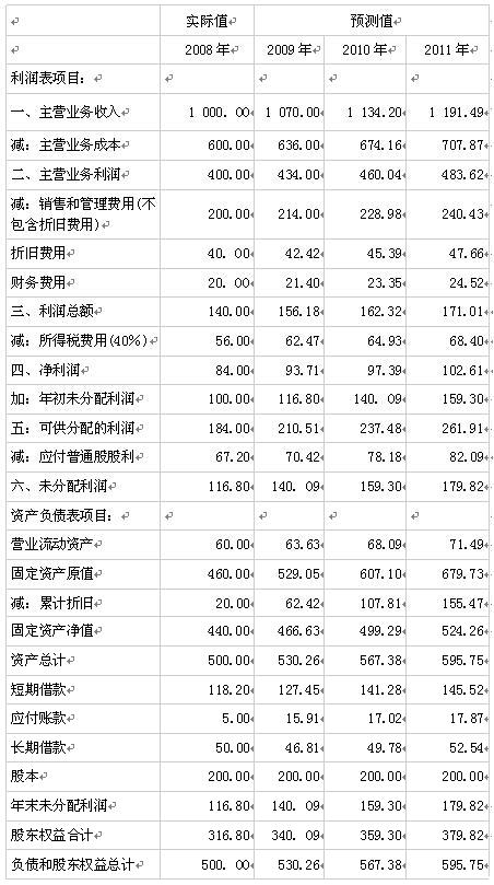 (1)甲公司的利潤表和資產(chǎn)負(fù)債表主要數(shù)據(jù)如下表所示。其中,2008年為實(shí)際值,2009年至2011年為預(yù)測(cè)值(其中資產(chǎn)負(fù)債表項(xiàng)目為期末值)。