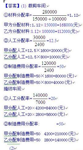 1.F公司是一個服裝生產(chǎn)企業(yè),常年大批量生產(chǎn)甲、乙兩種工作服。產(chǎn)品生產(chǎn)過程劃分為裁剪、縫紉兩個步驟,相應設置裁剪、縫紉兩個車間。裁剪車間為縫紉車間提供半成品,經(jīng)縫紉車間加工最終形成產(chǎn)成品。甲、乙兩種產(chǎn)品耗用主要材料(布料)相同,且在生產(chǎn)開始時一次投入。所耗輔助材料(縫紉線和扣子等)由于金額較小,不單獨核算材料成本,而直接計入制造費用。