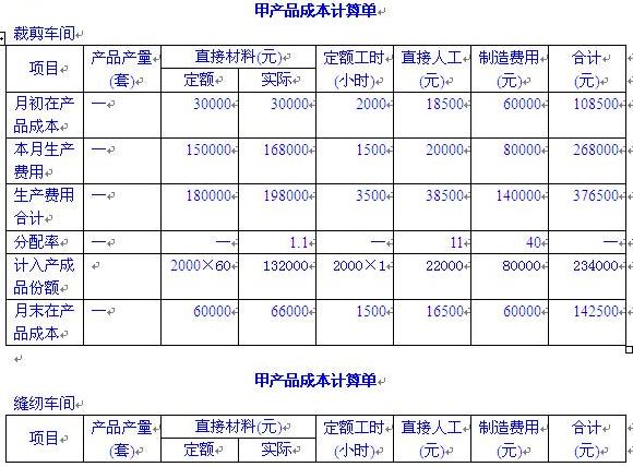 (2)編制裁剪車間和縫紉車間的甲產(chǎn)品成本計算單,結果填入答題卷第8頁給定的“甲產(chǎn)品成本計算單”中。