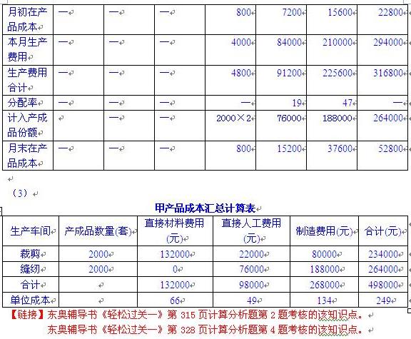 (3)編制甲產(chǎn)品的成本匯總計算表,結果填入答題卷第9頁給定的“甲產(chǎn)品成本匯總計算表”中。