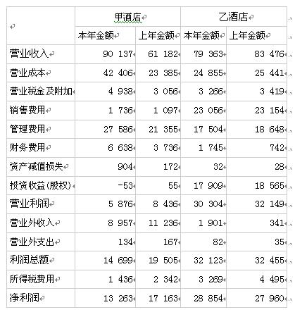 兩家酒店的利潤表對比