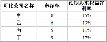 (2)使用修正市凈率的股價(jià)平均法計(jì)算A公司的每股價(jià)值。