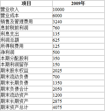 2.B公司是一家制造企業(yè),2009年度財(cái)務(wù)報(bào)表有關(guān)數(shù)據(jù)如下: