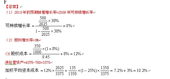 (1)計(jì)算B公司2010年的預(yù)期銷(xiāo)售增長(zhǎng)率。