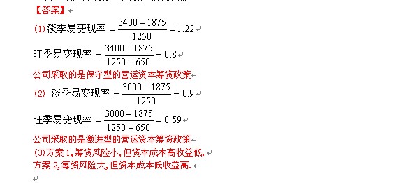 (2)如采用方案2,計(jì)算C企業(yè)在營(yíng)業(yè)高峰期和營(yíng)業(yè)低谷時(shí)的易變現(xiàn)率,分析其采取的是哪種營(yíng)運(yùn)資本籌資政策。