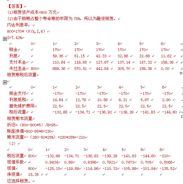 如果以租賃方式取得該設(shè)備,租賃公司要求的租金為每年170萬(wàn)元,在每年年末支付,租期6年,租賃期內(nèi)不得退租。租賃公司負(fù)責(zé)設(shè)備的運(yùn)輸和安裝調(diào)試,并負(fù)責(zé)租賃期內(nèi)設(shè)備的維護(hù)。租賃期滿(mǎn)設(shè)備所有權(quán)不轉(zhuǎn)讓。