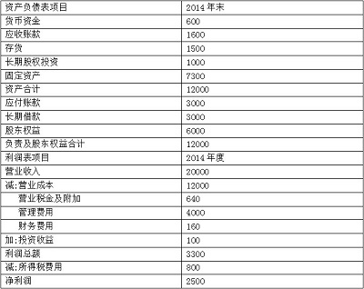 (1)甲公司2014年的重要財務(wù)報表數(shù)據(jù)(單位萬元)