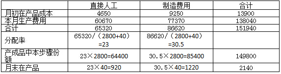 第二步驟制造費用月末在產(chǎn)品約當(dāng)產(chǎn)量=100×40%=40(件)