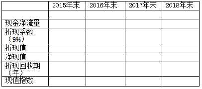 (1)計算項目的初始現(xiàn)金流量(2015年末增量現(xiàn)金凈流量)、2016—2018年的增量現(xiàn)金凈流量及項目凈現(xiàn)值、折現(xiàn)回收期和現(xiàn)值指數(shù),并判斷項目可行。