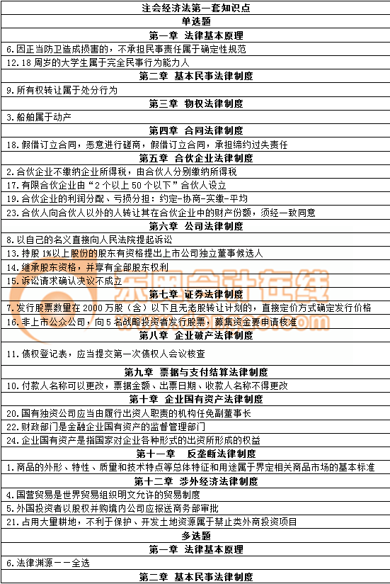 2018年注冊(cè)會(huì)計(jì)師經(jīng)濟(jì)法各題型涉及考點(diǎn)
