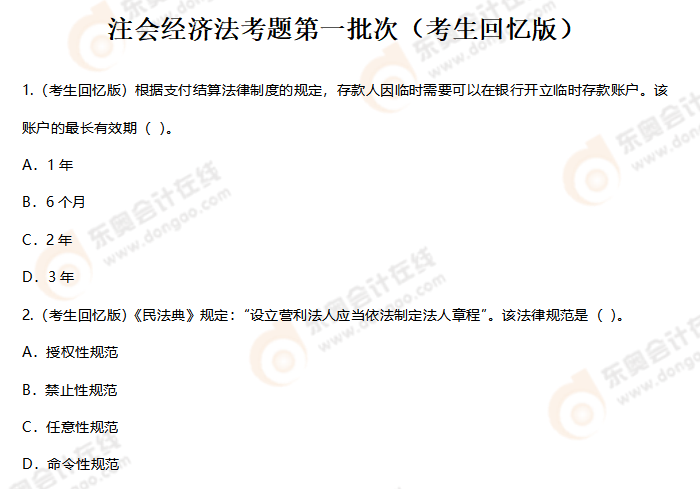 2022年注會(huì)經(jīng)濟(jì)法考題及參考答案第一批次(考生回憶版)